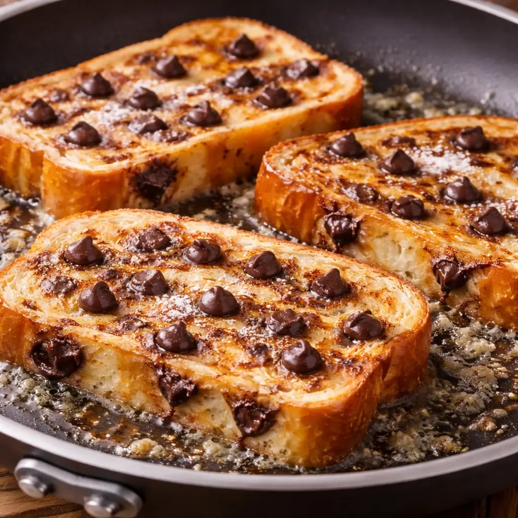 Serve chocolate chip French toast at best texture—the melted chocolate will ooze richly right on the pan.