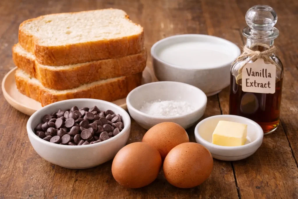 Chocolate chip French toast starts with simple staples, but quality ingredients make a big difference in flavor and texture. Choosing the right components ensures your chocolate chip French toast turns out soft in the center, golden on the outside, and filled with perfectly melted chocolate.
