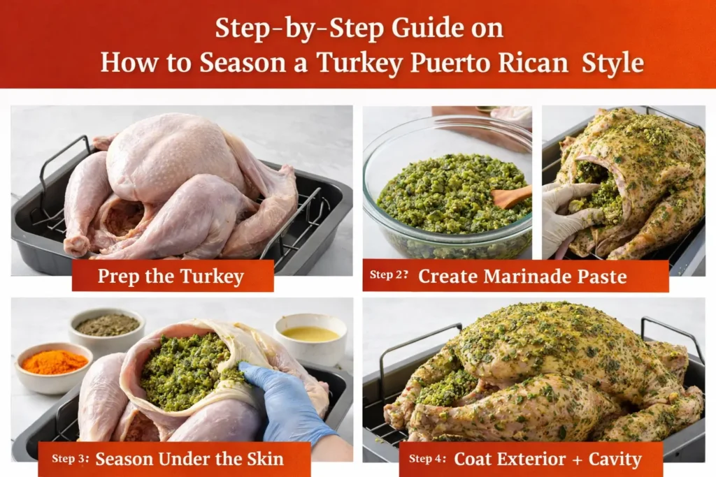 How to season a turkey Puerto Rican style with bold garlic, sofrito, adobo, and citrus flavors for a juicy, island-inspired holiday centerpiece.