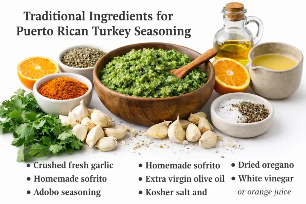 To master how to season a turkey Puerto Rican style, start with authentic turkey Puerto Rican ingredients that deliver bold island flavor. These fresh aromatics and spices create a marinade for the perfect pavochon recipe Puerto Rican style, soaking deep for juicy, unforgettable turkey.
